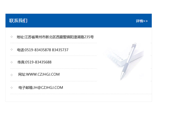 地址:常州市新北區友邦商務大廈1幢16、17層  電話:0519-85101652  傳真:0519-85112595  郵編:213022  網址:www.cz-jiayue_cn.longditex.com  郵箱:xiajifengaa@163.com